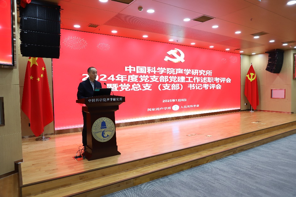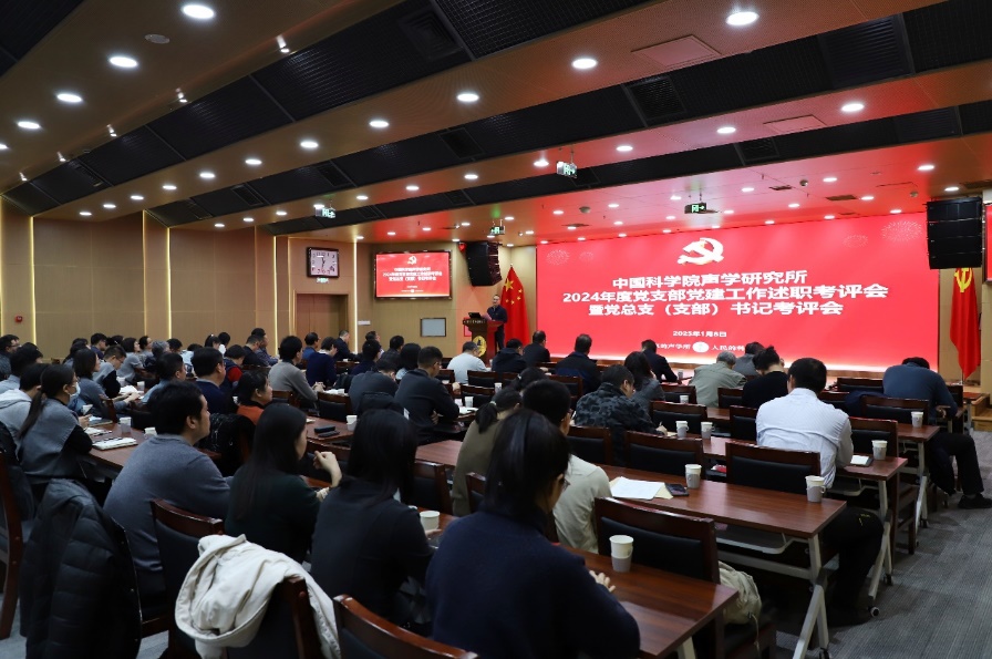 2025年1月8日上午,聲學所召開2024年度黨支部黨建工作述職考評暨黨總支(支部)書記考評會。李風華所長及全體所領導、黨委委員、紀委委員、工會/職代會負責人、實驗室主任(黨員)、黨總支(支部)書記、黨委辦公室及監督審計(紀委)辦公室相關人員、各黨支部委員及黨小組組長等黨務干部近90人參會。