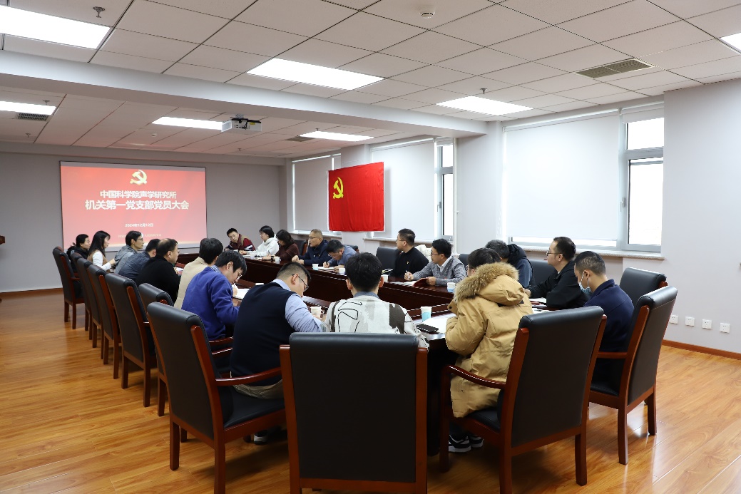 2024年12月12日上午,機關第一黨支部在崇福樓604會議室召開黨員大會,黨委書記倪宏、副所長楊波等黨員同志,以及入黨積極分子等近30人參會。會議由黨支部書記周城光主持。