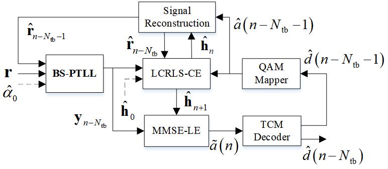 中國科學院聲學研究所海洋聲學技術實驗室博士研究生寇旭以及武巖波研究員等人利用后向維納平滑濾波器(backward smoothing, BS)提高高階調制下相位跟蹤的準確性,提出了基于逐符號重采樣的定時環路(Phase-and-Timing-Locked Loop, PTLL)補償Doppler帶來的信號相位扭曲和時間上的拉伸壓縮。并且設計了一種逐符號的基于自適應信道估計的均衡結構(Adaptive Channel-Estimation based Equalizer, ACEE),利用高階高碼率低譯碼延遲的網格編碼調制技術(Trellis-Coded-Modulation, TCM)逐符號保護高階調制信號的判決導引,提高均衡的準確性。相關研究成果發表于學術期刊Applied Acoustics。