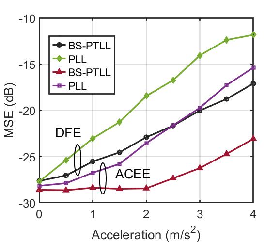 在以往的研究中,針對高階調制信號多采用嵌入鎖相環(Phase-Locked Loop,PLL)的判決反饋均衡器(Decision Feedback Equalizer, DFE)作為接收方案,但是PLL存在相位偏移估計性能隨信號星座圖案增大而降低的問題,在快速移動下僅利用PLL無法補償嚴重的定時偏差,并且隨著調制階數的增加,DFE判決導引可靠性將降低。