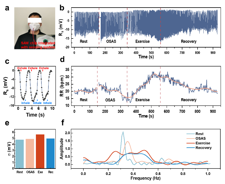 圖3 基于聲阻抗效應(yīng)的聲表面波實(shí)時呼吸監(jiān)測(圖/中國科學(xué)院聲學(xué)研究所)