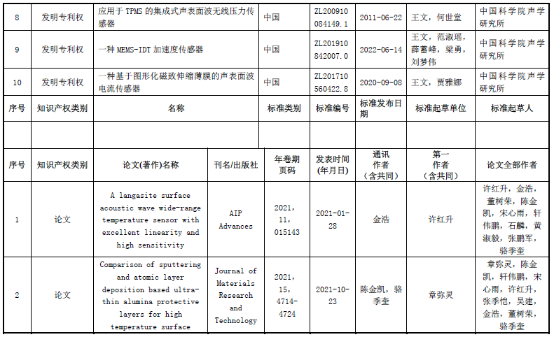 我單位“基于聲表面波的無線無源多參數(shù)傳感技術(shù)及應(yīng)用”項(xiàng)目提名2023年度北京市科學(xué)技術(shù)獎,現(xiàn)進(jìn)行公示。公示期:2023年10月07日至13日,公示期內(nèi)如有任何單位或個(gè)人對公示內(nèi)容有異議的,請您以書面方式向中國科學(xué)院聲學(xué)研究所科技發(fā)展部反映,以單位名義提出的,需加蓋單位公章;以個(gè)人名義提出的,需要提供個(gè)人身份證明文件。